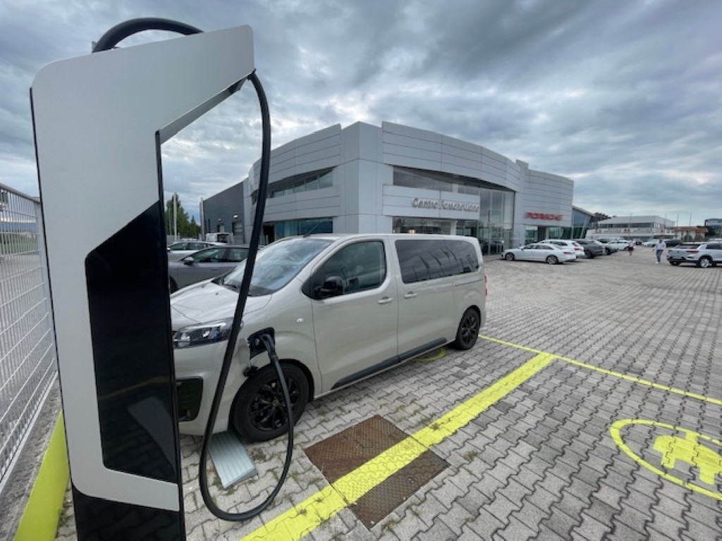 So hab ich mir die Ladestationen als Favoriten in Google Maps gespeichert und es konnte losgehen. Der erste Ladestopp Villach. Und der zweite Ladestopp bei der Hinfahrt war in Udine geplant, da hab ich mir zur Sicherheit zwei Schnellader rausgesucht, da eine Ladestation nur spärlich mit einem Schnelllader bestückt war.